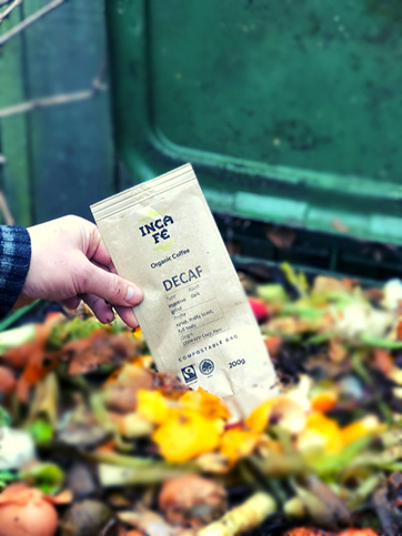 IncaFé’s EconicKraft packaging is made in New Zealand by Convex from a combination of compostable films derived from sustainably-produced wood pulp and GM-free corn sources. The bags are designed to break down in a home composting environment containing heat, water, oxygen soil and micro-organisms.
